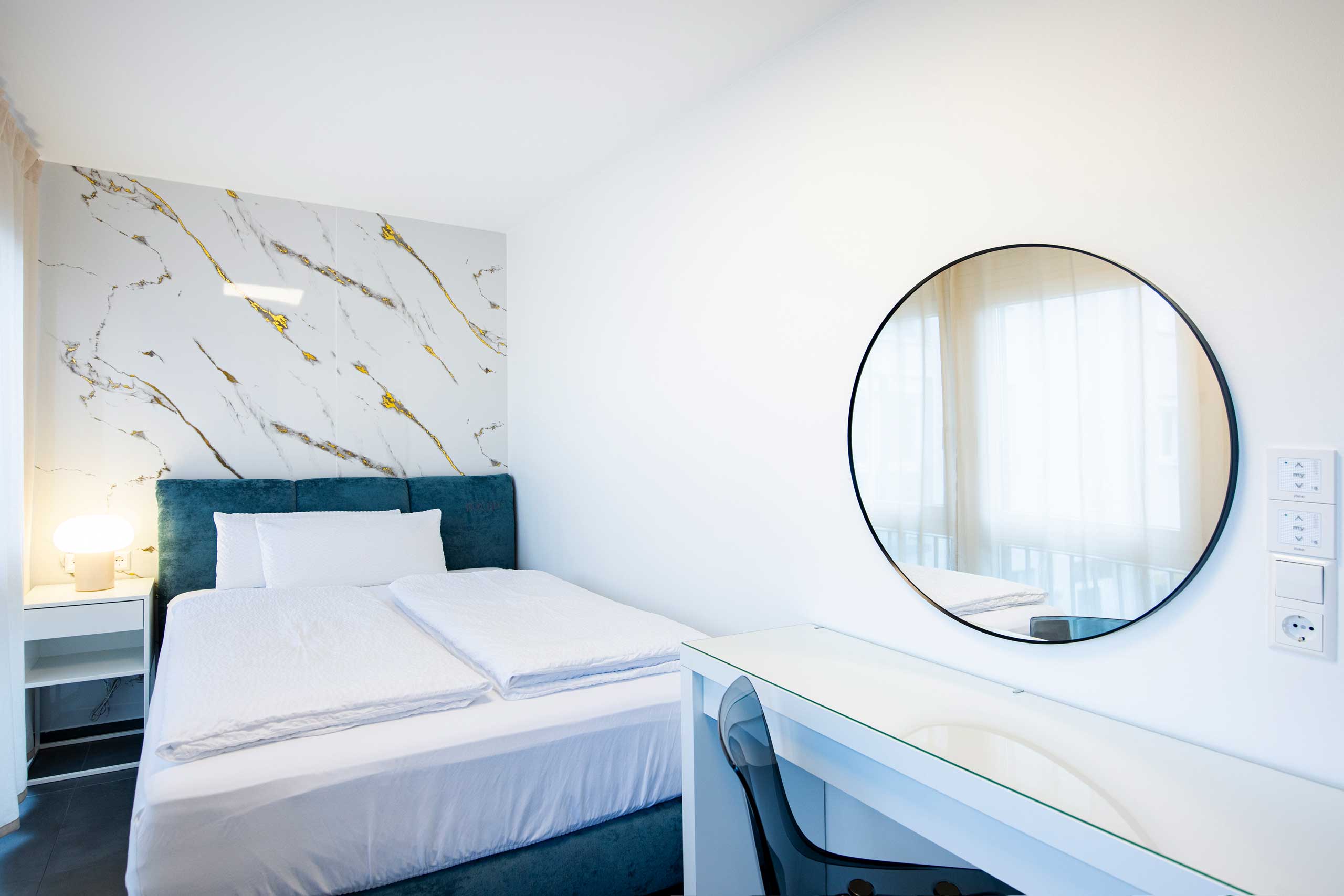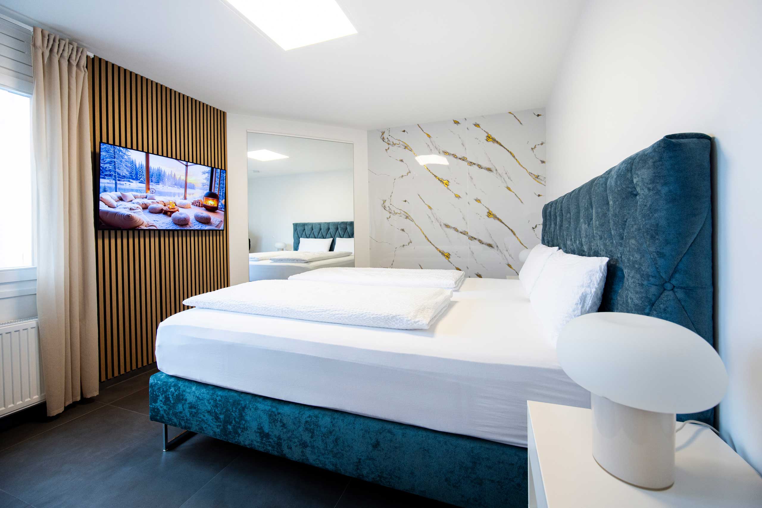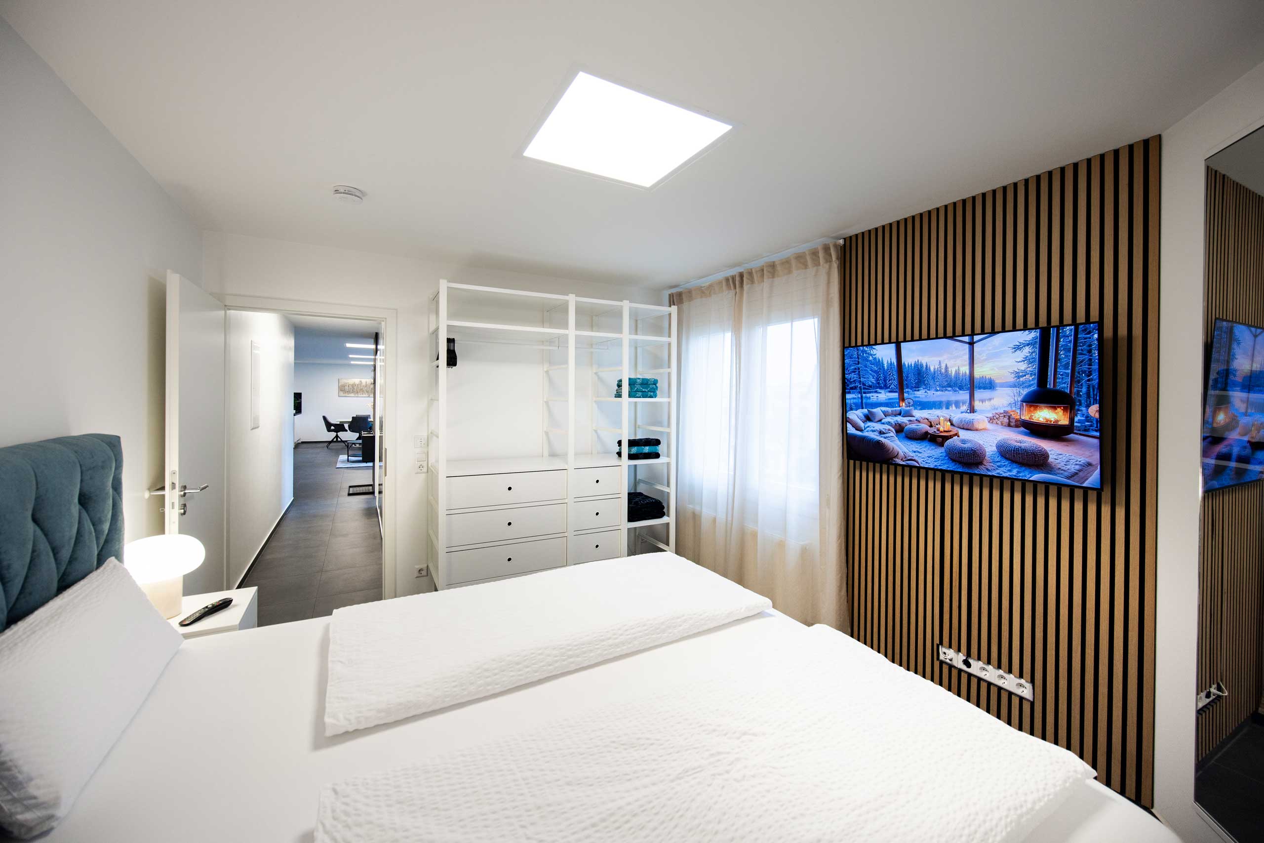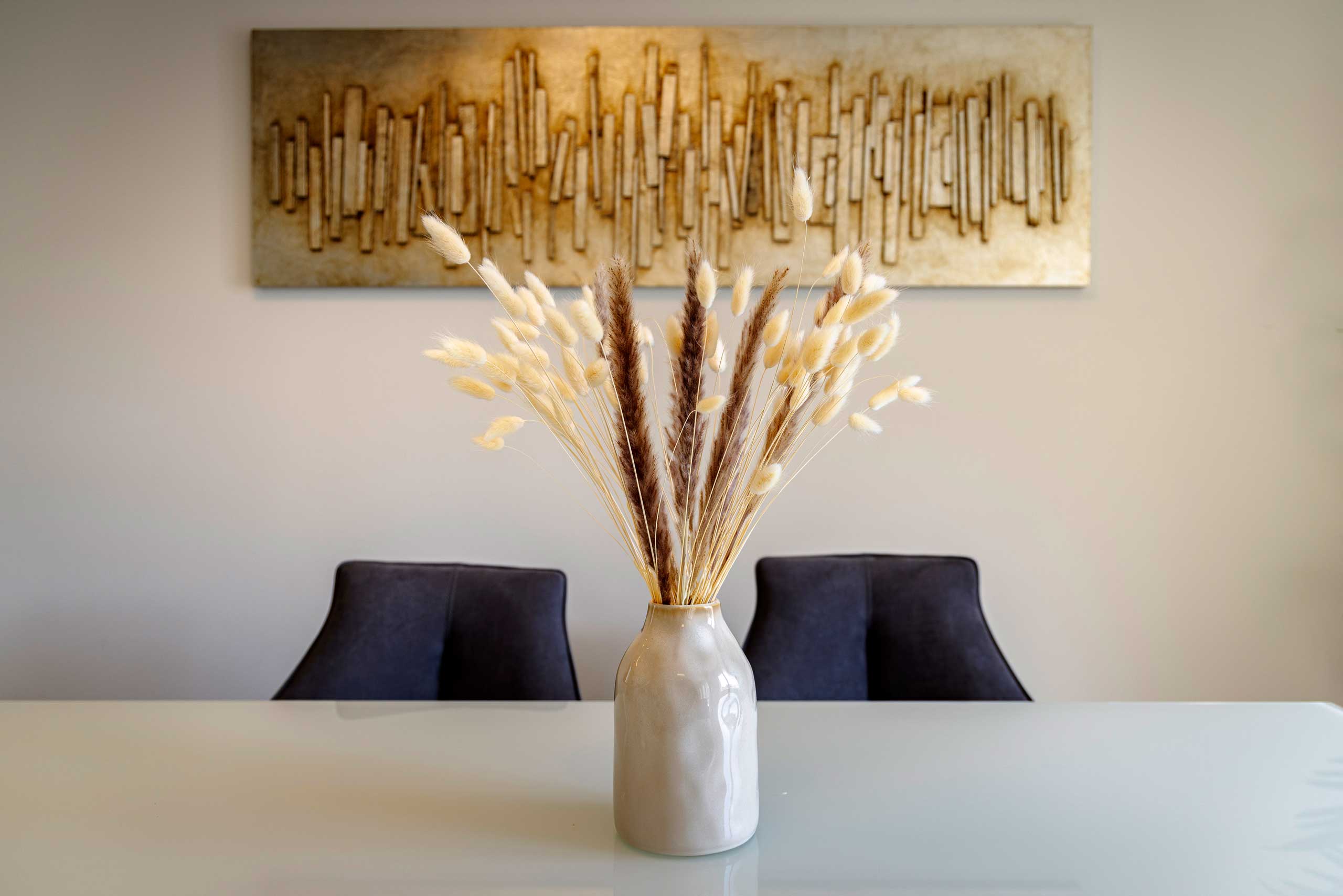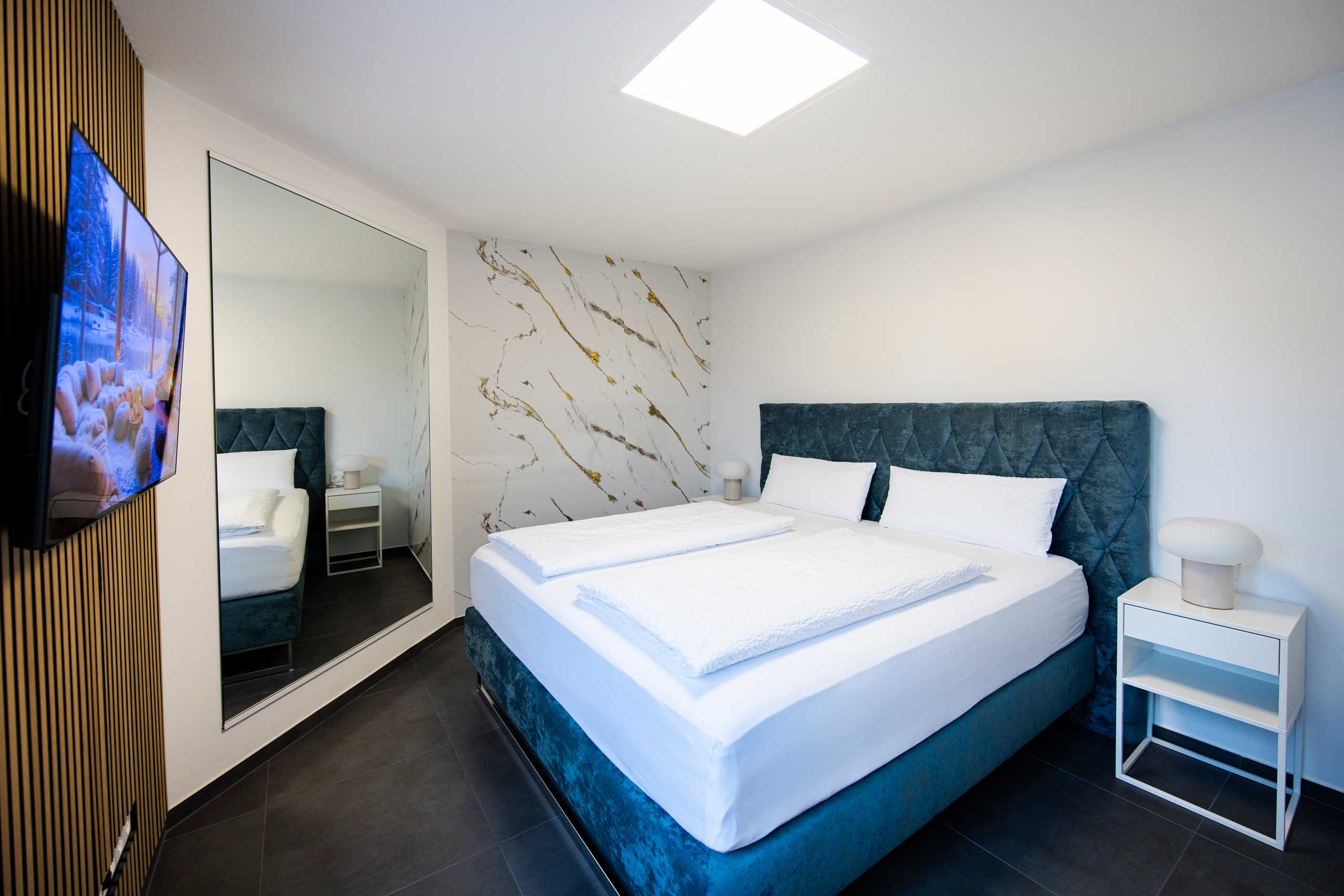 Entdecken Sie unsere hochwertige Ferienwohnung in Kornwestheim. Die Galerie zeigt Ihnen stimmungsvolle Eindrücke von Komfort und durchdachten Details unserer Unterkunft. Der großzügige Essbereich lädt zum Verweilen ein. Gemütliche Schlafzimmer, ein stilvolles Bad und der einladende Außenbereich verbinden Funktionalität mit echtem Wohlfühlambiente.